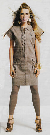 Стильная. Прямое мини-платье хорошо вписывается в стиль сафари благодаря застежке-шнуровке и большим карманам со встречными складками. Такая модель особенно идет высоким женщинам.