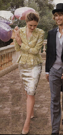 Крепкий союз. Свадьба- это не повод изменять своему стилю. Если романтичным платьям вы предпочитаете строгий костюм, в такой день можно пойти ан компромисс. В жаккардовом жакете с баской и прямой юбке до колена вы будете блистать независимо от своей роли- невесты или гостьи.