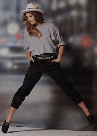 На бегу. Идеальный наряд выходного дня для динамичной леди- не сковывающие движений брюки длиной 3/4 и широкий пуловер с рукавами "летучая мышь". Романтичные барышни скомбинируют его с мини-юбкой.