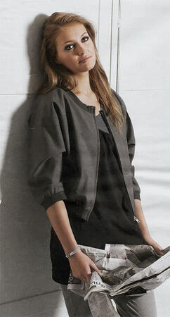 В ногу со временем. Они отлично дополняют друг друга- короткий шерстяной жакет с рукавами 3/4, отделанный "резинкой", и длинный трикотажный топ с глубоким вырезом.
