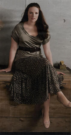 Новые вариации. Шелковый блеск превращает скромный пуловер с широким вырезом и патами на рукавах в праздничный наряд. Юбку с трикотажным поясом украшают три ряда оборок, выкроенных по косой.
