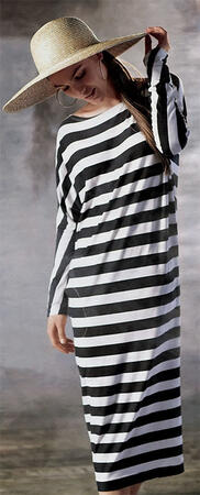Полосатый рейс. Морская тельняшка уже не один десяток лет вдохновляет модельеров на создание модных шедевров. Широкая поперечная полоска как нельзя лучше подходит для рукавов "летучая мышь". В таком платье вы будете выглядеть непринужденно и в то же время очень элегантно. А сшить его- проще простого!