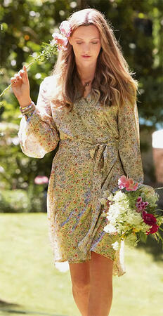 Природная красота. Наше платье с запахом из нежнейшего шелкового батиста напоминает пестрый букет свежих садовых цветов. Ткань довольно прозрачная, поэтому все детали, кроме рукавов, двухслойные.