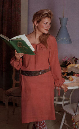 Девушка в красном. Этот цвет говорит сам за себя и не требует дополнительных украшений. Скромное прямое платье с карманами в боковых швах, присборенными рукавами и горловиной выглядит очень женственно и нарядно.