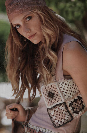 Ностальгия. Десять квадратных мотивов, связанные крючком, придают замшевому жилету легкое дыхание ретро.