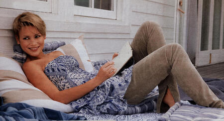 Время мечтать. Открытое платье без бретелей даст вам прекрасную возможность продемонстрировать бронзовый загар. Оно держится на фигуре благодаря тонким резиновым жилкам, а снизу развеваются оборки. Такая модель отлично комбинируется с узкими брюками.