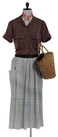 На природе. К расклешенной юбке с большими цельнокроеными карманами вместо блузки сшейте бюстье.