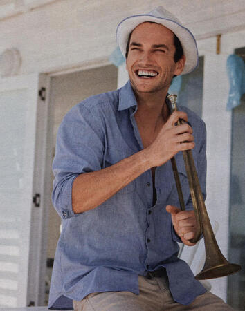 В одном стиле. Не будем забывать о мужчинах. Свободная рубашка классического покроя из поплина с интересным рисунком незаменима на отдыхе.