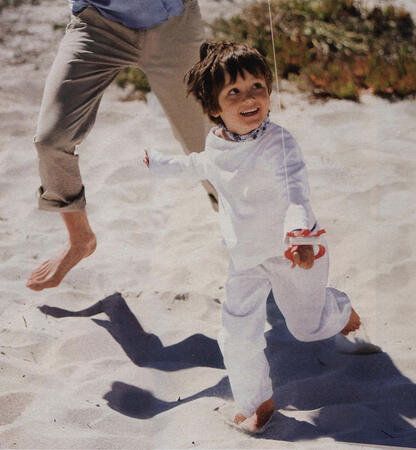 Маленький денди. Нарядно и в то же время непринужденно! В белом пуловере и брюках ваш сорванец с удовольствием попозирует перед камерой и ту же опять бросится вдогонку за воздушным змеем.