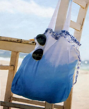 Все с собой. Простую белую сумку легко превратить в дизайнерскую вещь с помощью баллончика белой краски и лоскута батиста.