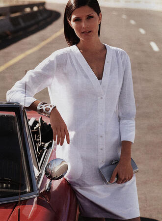 Прямая дорога. Решительным натурам придется по нраву платье прямого покроя с блестящей отделкой. Обратите внимание, что пуговицы пришиваются на планке не только сообразно петлям, но и вдоль горловины.