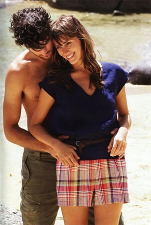 Отличный дуэт. Синий топ с V-образным вырезом горловины и небольшими разрезами по бокам хорошо сочетается с клетчатыми шортами. Эта модель немного сложнее, чем кажется: спереди у пояса заложены складки, сзади расположены вытачки и накладные карманы, еще два кармана- в боковых швах.