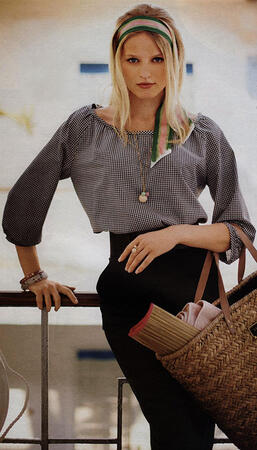 Привет из Виши. Всегда одеваться со вкусом под силу не только француженкам! Блуза из клетчатой ткани с вырезом кармен и рукавами реглан длиной 3/4 украсит любую женщину.