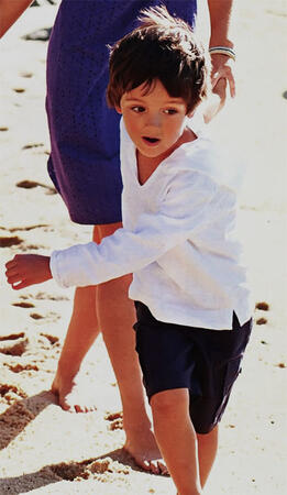 Давай играть! Мальчишке, мечтающему стать настоящим морским волком, просто необходимы бермуды с большим количеством карманов для всевозможных ценных находок, а здесь их целых шесть: 2 боковых кармана с отрезными бочками, 2 накладных сзади и 2 накладных с клапанами внизу. А сверху можно надеть льняной анорак с капюшоном - очень удобный для игр на пляже.