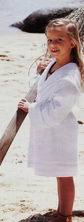 После купания. Вдоволь наплескавшись в теплой воде, приятно закутаться в уютный махровый халат с капюшоном, ведь с моря часто дует легкий ветерок. У халата нет застежки, поэтому он подойдет как девочкам, так и мальчикам.