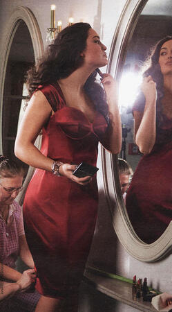 Само очарование. Сексуально облегающий фигуру сатин, глубокие V-образные вырезы спереди и сзади, широкий воротник-шарф, слегка обнажающий плечи... В таком наряде вы способны пленить кого угодно- и не только в торжественной, но и в более интимной обстановке!