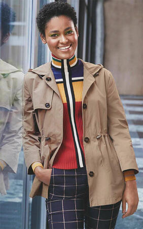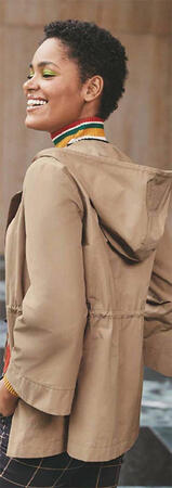 Большой капюшон, отлетная кокетка, роговые пуговицы, кулиска на талии: наша спортивная куртка - идеальный микс парки и тренча для межсезонья.