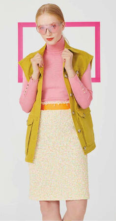 Неоновые цвета не слишком подходят для делового стиля. Но в дозированном виде они вполне актуальны для офиса и бизнес-встреч. Наша юбка-карандаш из букле с настроченной репсовой лентой - прекрасное тому подтверждение.