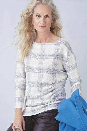 Мягкая фактура ткани особенно модно смотрится с такими гладкими материалами, как кожа. Драпировка и клетка не совместимы? Но с нашим пуловером все наоборот: асимметричные складки вносят динамику и добавляют модели шарма.