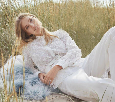 Оборка на горловине вместо воротника, тонкие планки с пуговицами, скромные манжеты - здесь ничто не отвлекает от живописности кружевного плотна.