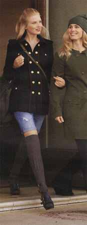 Молодежь любит неординарность и всегда готова экспериментировать. Поэтому погоны, накладные карманы с клапанами, яркие канты и металлические пуговицы жакета, напоминающего мундир, контрастируют с джинсовыми шортами, шерстяными гольфами и босоножками.