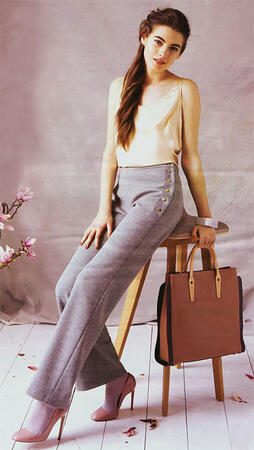 Прямые трикотажные брюки также застегиваются сбоку, но на большие металлические кнопки.
