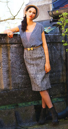 Благодаря тому, что верхняя часть платья выполнена из мелированного трикотажного полотна,