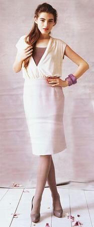 выполнена из мелированного трикотажного полотна, а классическая юбка карандаш - из фланели.