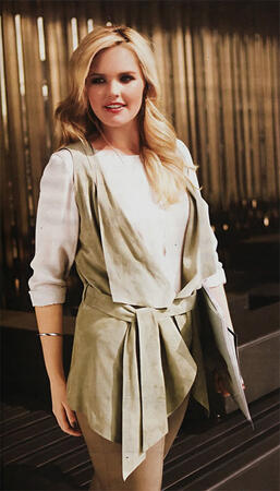 Прекрасная альтернатива скучному деловому костюму-длинный замшевый жилет,завязывающийся на талии.