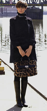В коротком пальто силуэта трапеция, с плечевыми кокетками