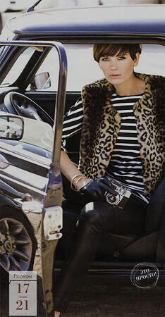 с коротким жилетом из синтетического меха под леопарда.