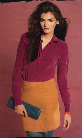 Юбка с запахом состоит всего из одного полотнища и фиксируется на талии лишь двумя кнопками.
