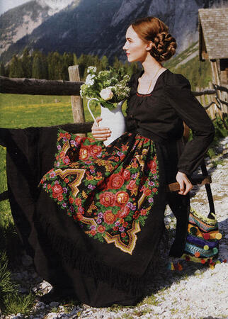 Типичная крестьянская рубашка с пышными рукавами украшена ручной вышивкой крестом.