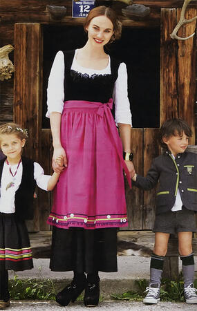 Платье в бархатным верхом в виде корсета, яркий шелковый фартук