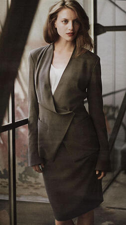 сразу выделит этот ансамбль из серой массы классических деловых костюмов.