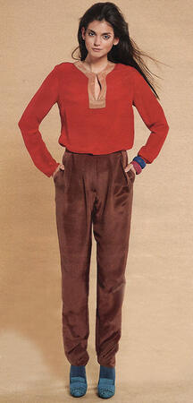 Брюки из крепдешина с шелковым отливом смотрятся шикарно.