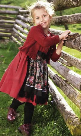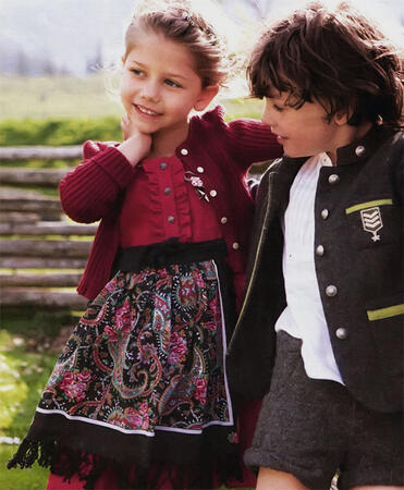 У него пышная юбочка, вдоль планок застежки настрочены оборки.