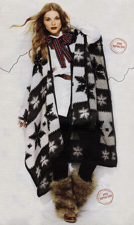 Снежная королева. Проще не придумаешь! Разрежьте вязаное плотно по центру до середины и окантуйте все срезы полосками из кожи - модное пончо готово! Меховые гетры шьются также легко и превращают обычные ботинки в шикарные унты.