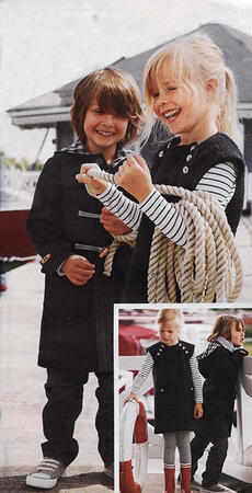 Умеешь вязать узлы? Два ряда блестящих пуговиц, которыми пристегиваются рукава реглан, и еще две на накладных карманах - ваша малышка будет выглядеть, как на параде!