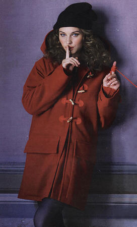 Маленький секрет. Можете быть уверены, в ярко-красном пальто с двойным капюшоном и большими накладными карманами с клапанами у вас будет хорошее настроение даже пасмурным днем! Особого внимания заслуживает декоративная застежка клевант с деревянными пуговицами.