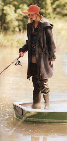 Знатный улов. Непогода не страшна, если вы в парке с большим капюшоном и накладными карманами. Ведь она сшита из плотного трикотажа и снабжена кулисками не толь ко на талии и рукавах, но и по нижнему краю. В дополнение - мягкий пуловер с эффектом запаха.