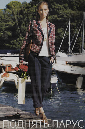 Микс де люкс. Интересное решение: клетчатый жакет отделан по краям контрастной репсовой лентой. Две полоски на рукавах напоминают нашивки на капитанском кителе.