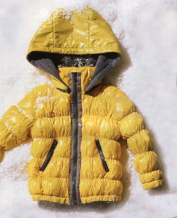 В ярко-желтой стеганой куртке на теплой трикотажной подкладке