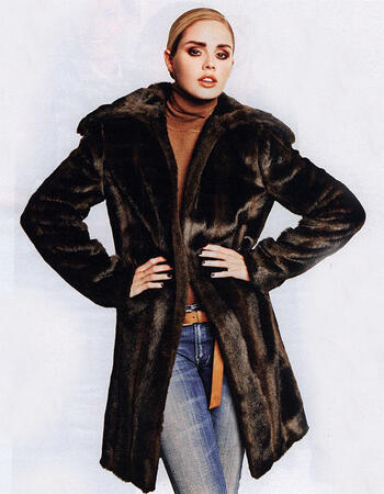 Блестящая нутрия. Большой отложной воротник создает дополнительный комфорт и является главным украшением скромной шубки длиной до колен с практичными карманами в боковых швах. Застежек здесь нет, поэтому рекомендуем носить эту модель с широким поясом.