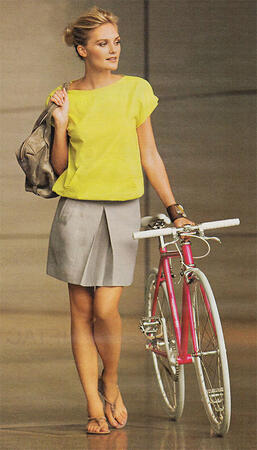 Весна на старте. Белые блузки- в сторону, предлагаем облачиться в свободный "блузон" броского цвета с приспущенными плечами и карманом-кенгуру. Он составит отличную компанию офисной юбке со встречной складкой спереди.