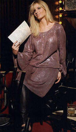 Как по нотам. Эффектное мини в сочетании с леггинсами из искусственной кожи - прекрасная альтернатива длинному вечернему платью. Отличительные черты этой модели: широкий вырез горловины, рукава-раструбы, небрежный напуск на талии, образующийся за счет кулиски.