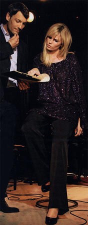 Последний прогон. Переливающаяся на свету туника с длинными рукавами реглан выглядит очень женственно. Пикантность ей придает небольшой разрез в переднем среднем шве у планки горловины. Брюки в стиле Марлен Дитрих имеют удобный широкий пояс.