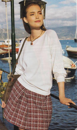 Первым классом. Мини-юбка со встречной складкой и прорезными карманами выглядит довольно скромно, но в то же время изысканно.